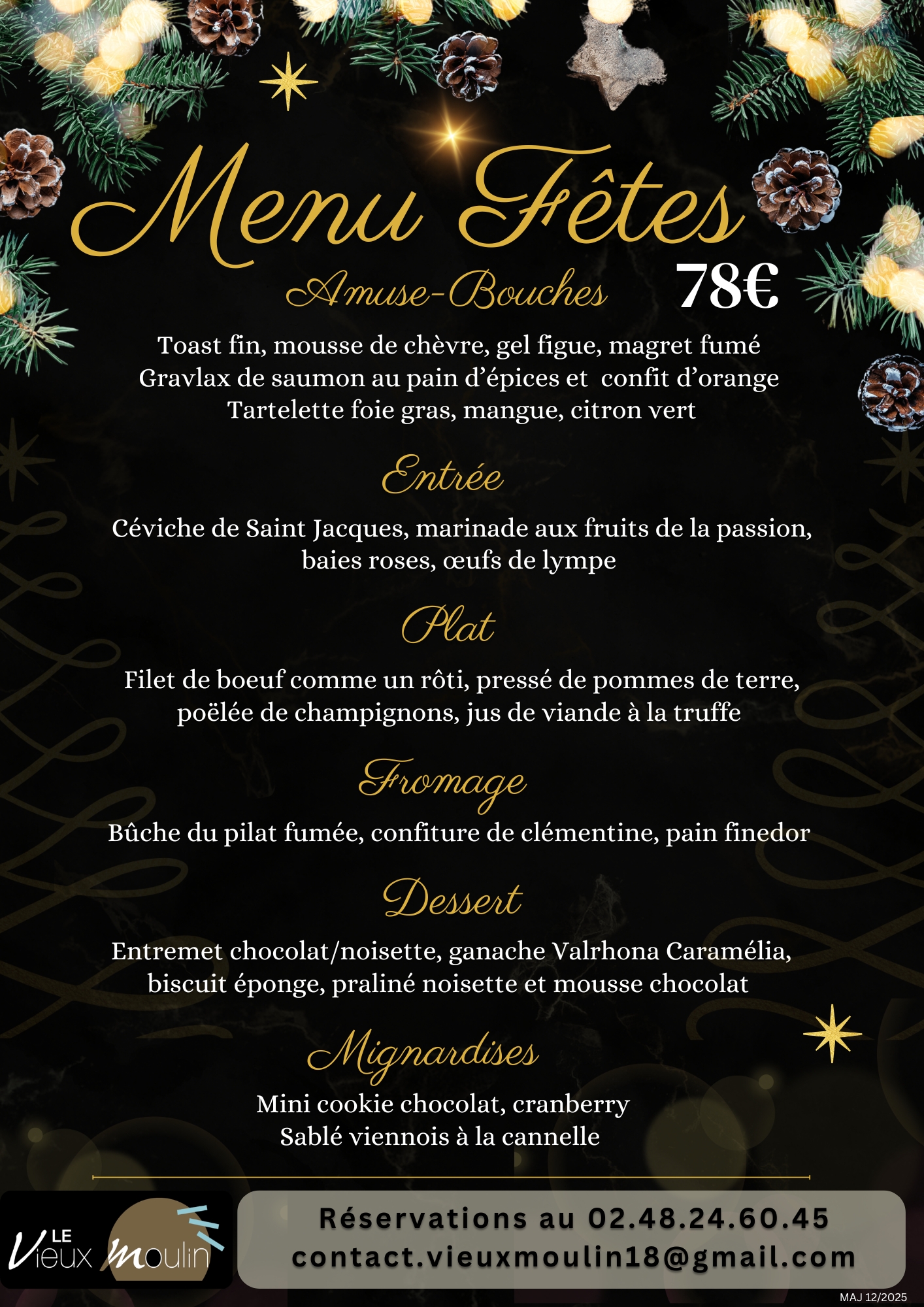 Menu du 25/12/2025 à midi et du 01/01/2026 à midi